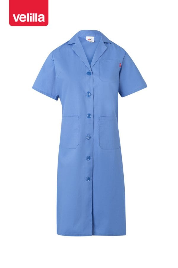 Bata de mujer VELILLA 907 de manga corta con cierre central. Es una prenda ideal para el sector de la sanidad.