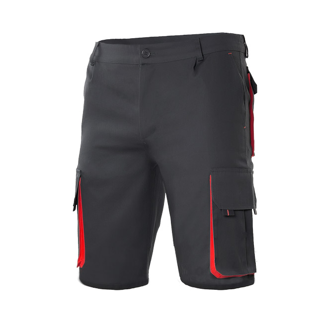 Bermuda bicolor multibolsillos unisex con cierre central de cremallera y botón, cinturilla elástica, refuerzo de tejido trasero, costura trasera de seguridad y pinzas. Gracias a sus 6 bolsillos ofrece gran espacio para guardar las manos o utensilios de trabajo. Presenta dos bolsillos franceses, dos bolsillos de fuelle con fuelle central, tapeta, velcro y tiradores; y dos bolsillos traseros de fuelle, con tapeta, velcro y tiradores.