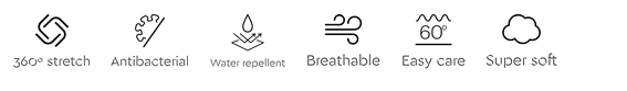 - Tejido con tratamiento antibacterias y repelente de líquidos