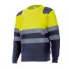 Chaqueta estilo polar de alta visibilidad con cremallera frontal con protector de barbilla. Dos bandas reflectantes horizontales en torso y mangas. Dos bolsillos frontales con cremallera a tono y un bolsillo en el pecho. Puños elásticos y ajustadores en el interior del bajo.